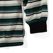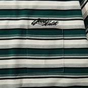 程良い肉感のコットンボディに太細の黒緑アイボリーの配色ボーダー。シルエットも以前に比べ着丈を短く調整。身幅や腕周りは着易さ重視で以前と変わらずややゆったり目に設定。首元のリブはオリジナルで作製し、背面部分にはブランドロゴをジャガード織りにてアクセントに。フロント左胸にはポケット付き上部にはロゴ刺繍。シンプルながらインパクトあるボーダーロンTに。