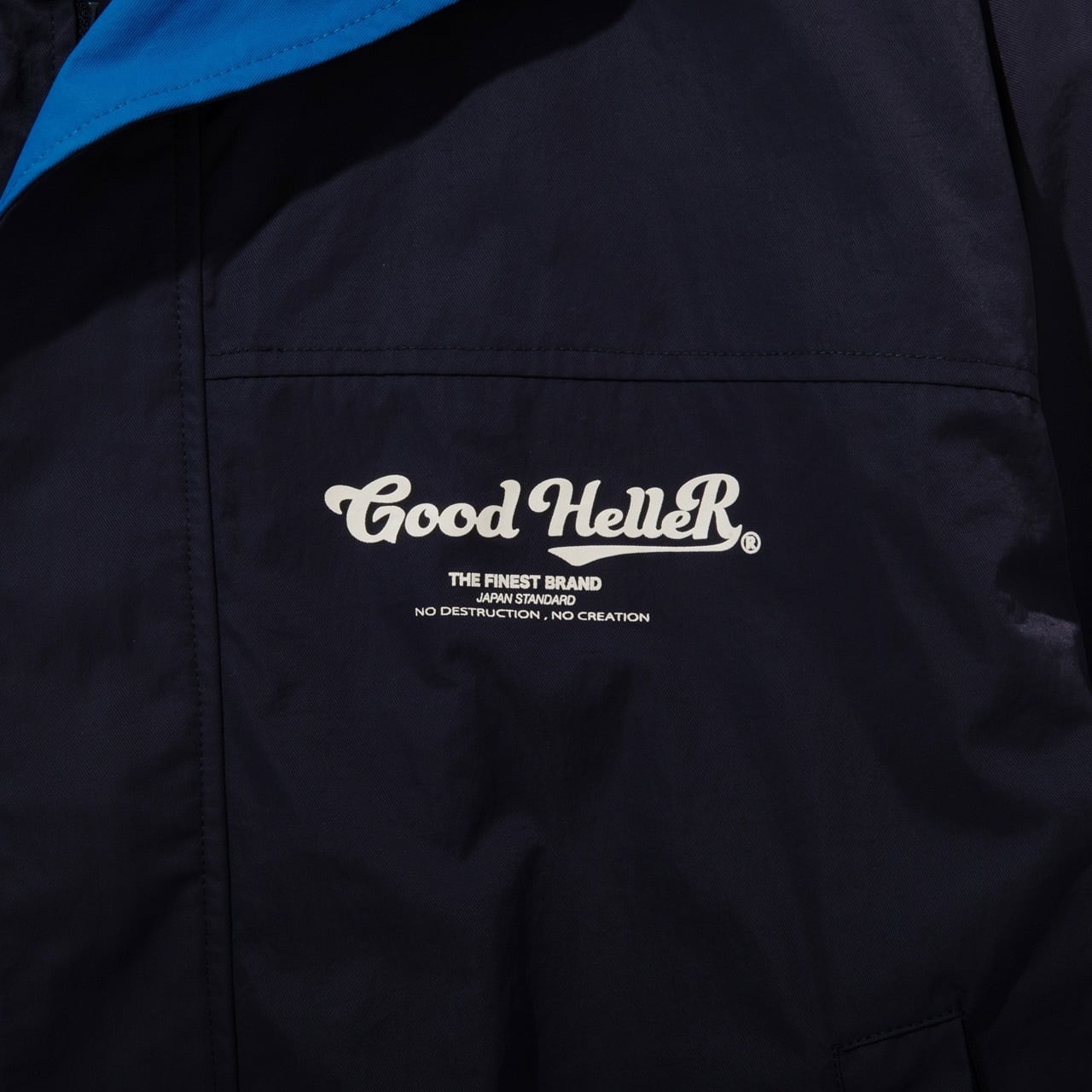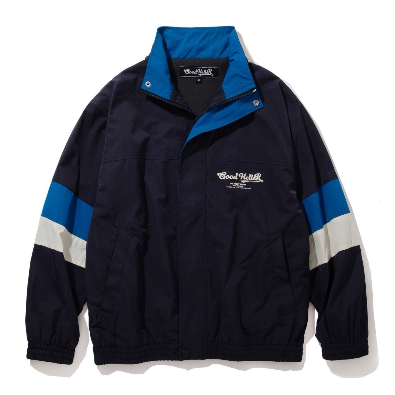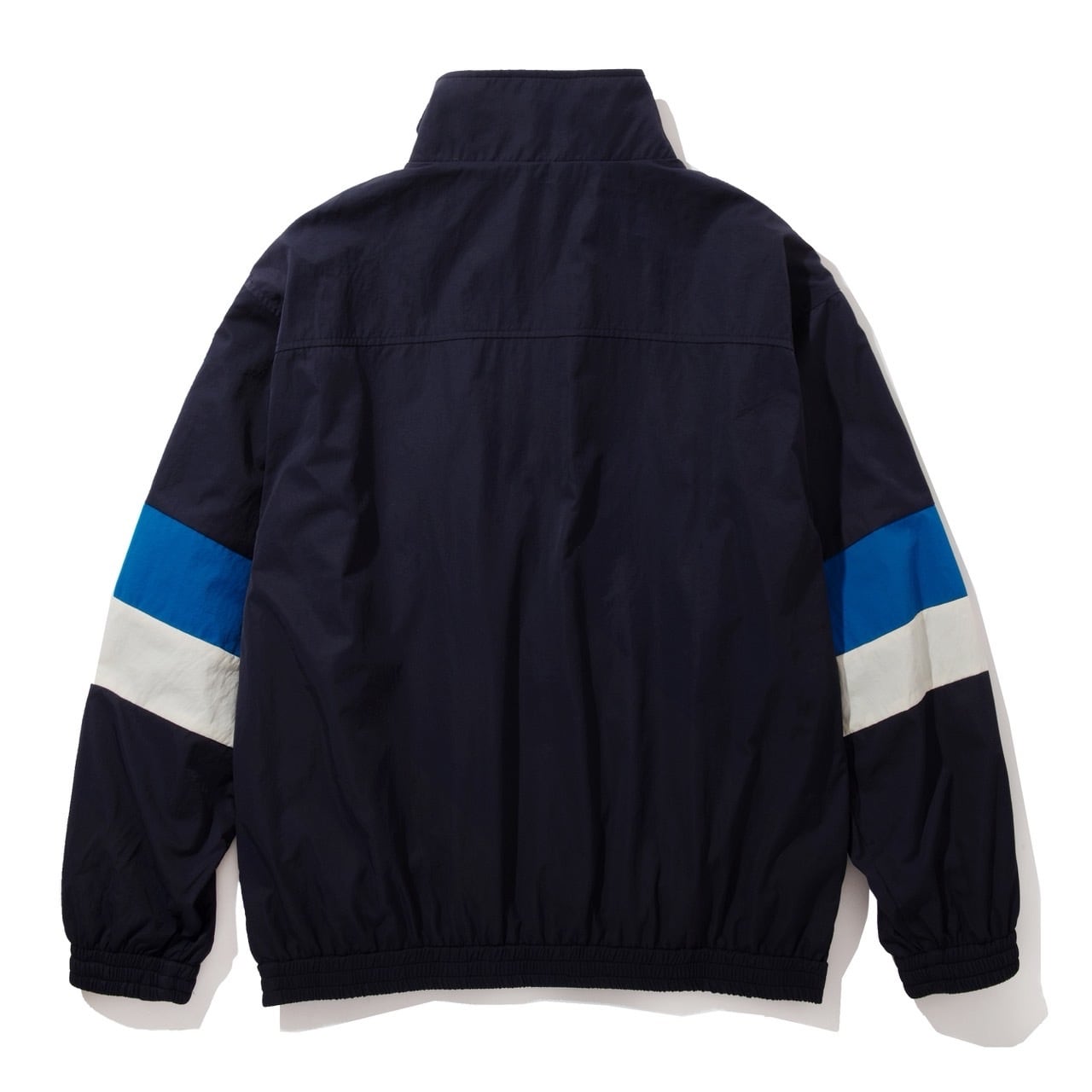 程良い肉感で滑らかな素材感のナイロン地をベースに袖部分を共地の切替えしでアクセントに。襟はやや高めに設定したスタンドカラータイプ、フロントジップ、幅広のウインドストッパーの前立て仕様に。襟部分と裾にはオリジナルロゴのスナップボタン使用。左胸にはメインロゴをプリント。裏地には着心地、通気性を考慮しポリエステルメッシュに。インナーにスウェットやシャツを合わせてもかさ張ら無いようにシルエットはややゆったりとした身幅に、長すぎない丈感に。アウトドアテイストでこれからの時期に重宝出来るのでは。