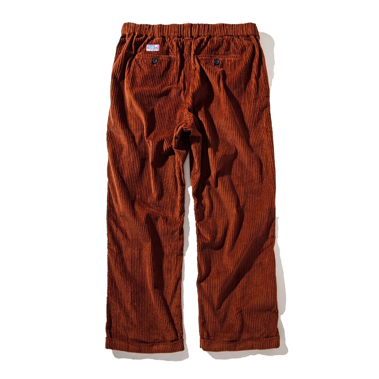 肉厚で太畝のコーデュロイ生地を使用し、シルエットはやや深めな股上とワタリから裾にかけてやや太めに設定したワイドストレートタイプに。履き心地の良いイージータイプのコーデュロイパンツ。これからの時期に重宝できるのでは。