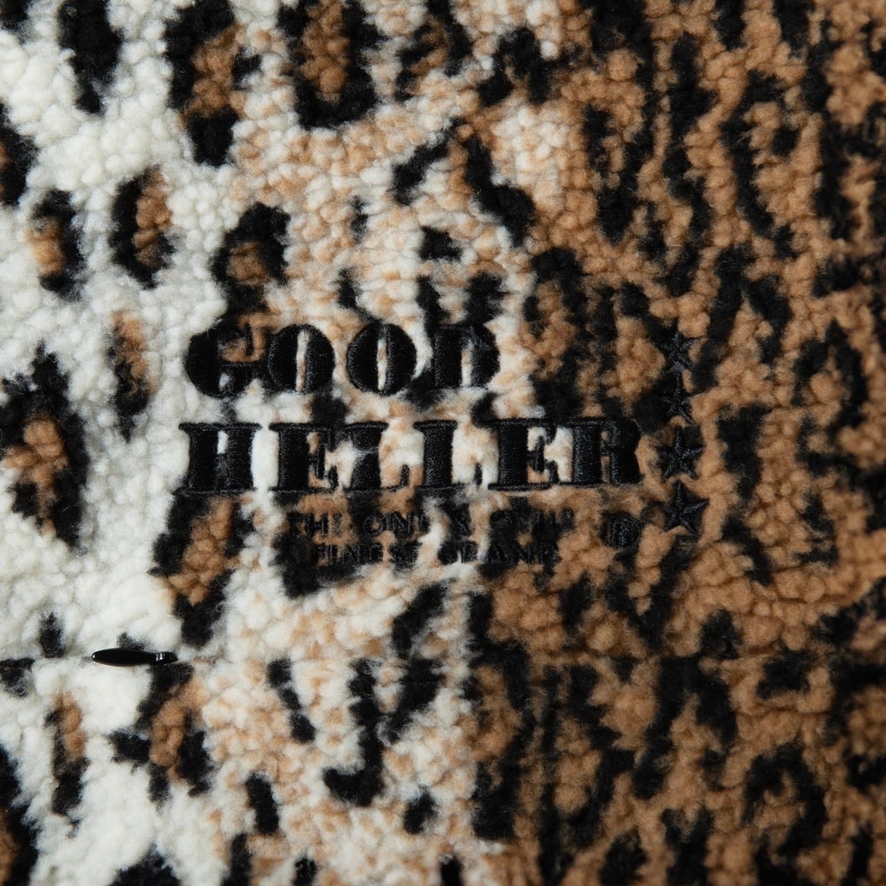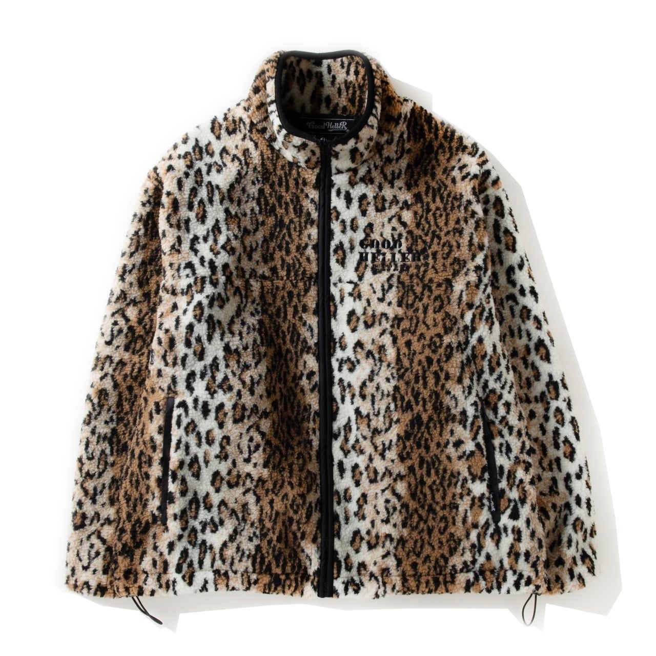肉厚でボリューム感のあるボアフリースに裏地はナイロン地を使用することで、着易くまた風の通りをシャットアウトしております。また、フロント胸部分を切替えし、左胸にジップポケット、さらに胸上にはブランドロゴを刺繍しております。シンプルながら存在感のある仕上がりとなっております。またもう一色は派手過ぎないレオパード柄をチョイスし、カジュアルでインパクトある一枚となります。