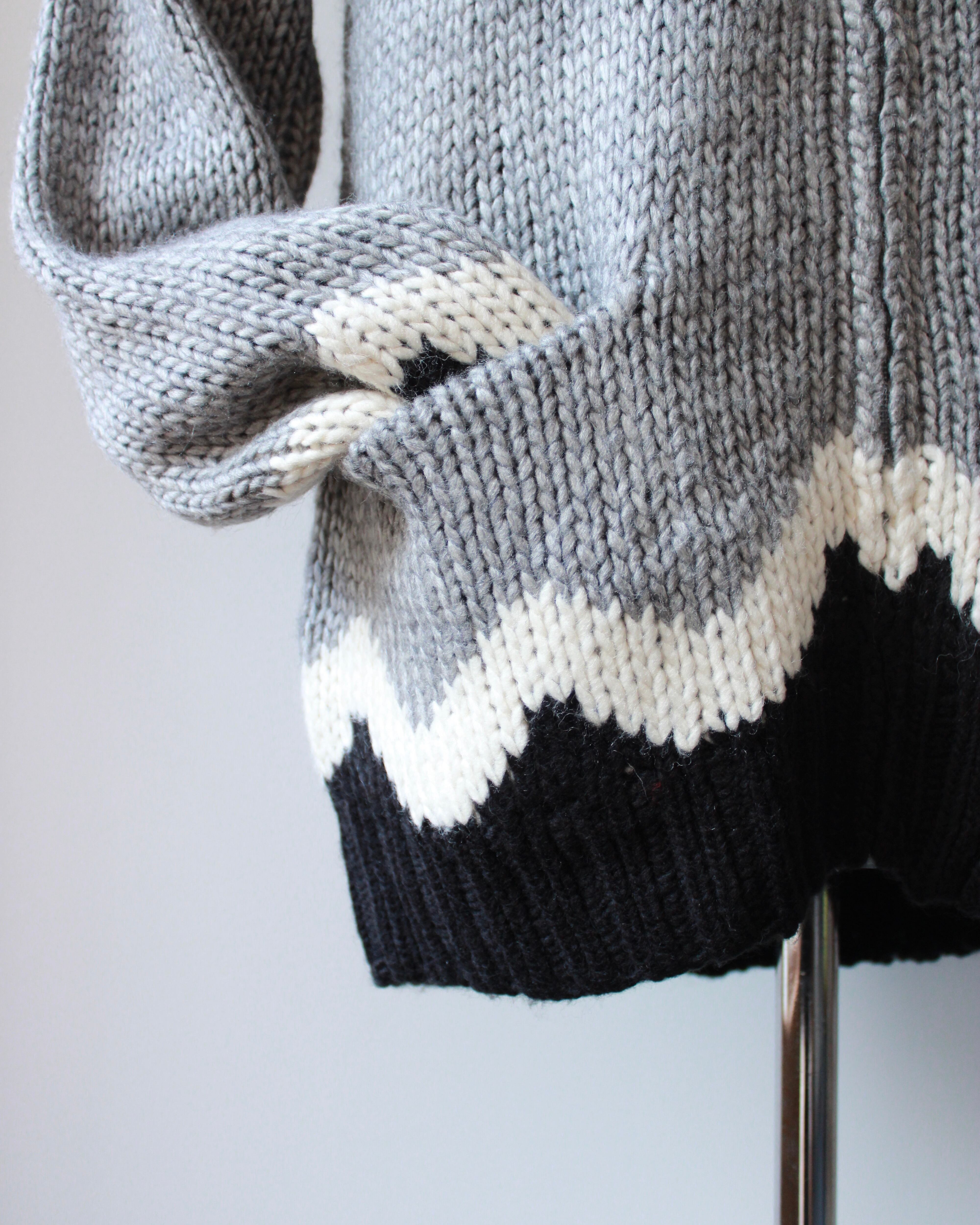 ショールカラーでジップアップ仕様のカウチンニットカーディガン。表地にはアクリルとウールの混紡糸、裏地にはフリースを使用しているので、保温性は抜群。シンプルな求心柄が映える一着。様々なスタイルに合わせやすいデザインに仕上げている